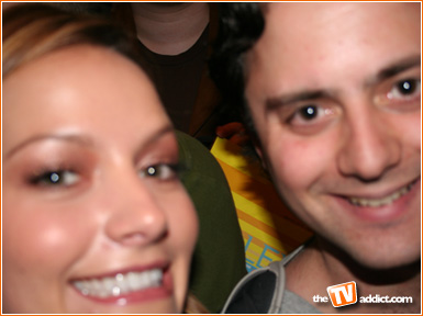 Becki Newton poses with theTVaddict himself — and if you’re wondering why the photo is so ‘artsy’, well Becki took the photo herself (without being able to see the screen). Yes, Becki Newton touched my camera (it’s being cast in gold as we speak). |