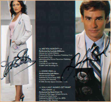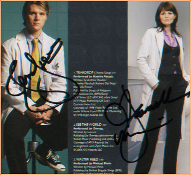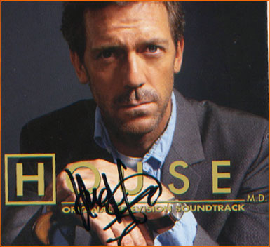 That said, today’s contest puts our previous contests to shame. Not only are we offering up two, count ’em two copies of the original television soundtrack of FOX’s hit show HOUSE [click here to check it out online]. The CD’s are signed by a few Doctors you may be familiar with. Namely Lisa Edelstein (Dr. Cuddy), Robert Sean Leonard (Dr. Wilson), Jennifer Morrison (Dr. Cameron), Jesse Spencer (Dr. Chase), Omar Epps (Dr. Foreman) and of course, the man himself Hugh Laurie (Dr. House).