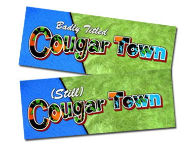 Just when you thought COUGAR TOWN couldn’t get any funnier, comes the recent addition of the unexpected tags to their show’s opening credits in a nod to the split opinion surrounding COUGAR TOWN’s somewhat controversial title. And while we have absolutely no idea how long the writer’s intend to keep this up for, we figure, if THE SIMPSONS can come up with 22 seasons (and counting) worth of couch gags, Bill Lawrence, Kevin Biegel et al should at the very least have five or six seasons in ’em!