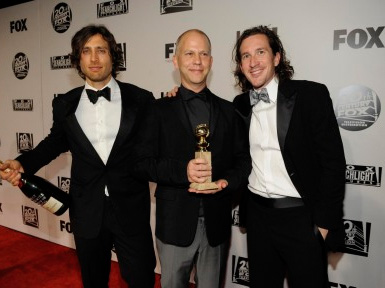 Note to writers Ian Brennan, Brad Falchuk and Ryan Murphy (pictured above): When it comes to your hit Fox show, we’re willing to forgive an awful lot. So if we’re expected to believe that New Directions — which has spent the better part of two seasons trying to make Nationals would leave it until the VERY LAST MINUTE to write, not to mention choreograph and costume an original song — so be it! If you want us to buy into Mercedes and Sam as a couple — who at last count have shared, what… two scenes together — fine! That said, we have to draw the line somewhere and what we are completely and unwilling to look past is last night’s absurd opening scene that had Rachel Berry — who we’re fairly confident could hit a high note before she could take her first step — buy 13 tickets to Broadway’s Cats, a show that even Quinn knew closed 11 years ago! Suffice it to say, it’s precisely that type of lazy and mindless writing that has us wondering if penning 22 episodes of GLEE per season has simply become too much of a burden for three people to bare.