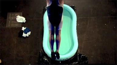 What’s not cool, however, is that his pool wasn’t sitting on the floor. The pool was sitting on a large plastic tarp (understandable given the studio setting), but the pool wasn’t level with the surrounding floor. What if this guy had something underneath to soften the impact, like a spring/air mattress or large piece foam? Where’s the danger or excitement in that? I’d jump into a pool from 30 feet if it had a safety net.