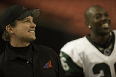 TERRELL: Well, I’ve done a few things throughout my career playing football, so I’ve done a lot of cameos here and there, and as of lately, I’ve done a lot of acting. I did a comedy last year called DYSFUNCTION FRIENDS that’s hopefully going to be hitting the theaters this fall, and just did, obviously, NECESSARY ROUGHNESS, did an episode on SINGLE LADIES, and just taped another little episode on GOOD CHRISTIAN BELLES, that’s going to be on ABC. So I’ve just had a lot of people tell me that I was very comfortable in front of the camera. A lot of people have kind of hinted on me doing commentating, broadcasting, things of that nature, but you know I have a lot of friends that are in the industry — a new friend in Marc Blucas who I’ve known for a while and Mehcad Brooks. And I’ve had a great cast of people that I’ve worked with along the way, so I’m very fortunate and thankful to USA Network and everybody that brought me aboard to play and participate with this role of NECESSARY ROUGHNESS.