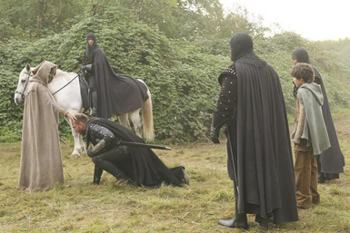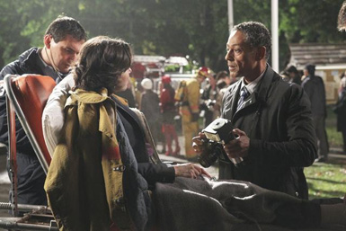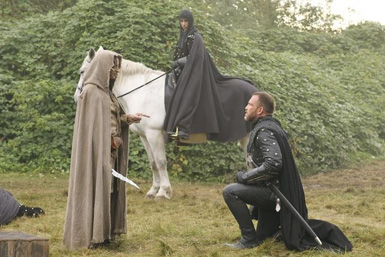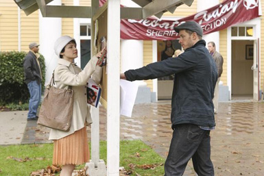 Move over Romney, Bachmann and Paul, there’s a far more important election than this evening’s Republican Primary. For this [Super] Sunday January 8th the fairy tale town of StoryBrook Maine will be holding an election of their very own. The purpose, to find a replacement for the dearly departed Sheriff Graham (RIP). And while we sure as heck aren’t about to spoil whether or not Emma Swan (Woo-Hoo!) has what it takes to defeat Sidney Glass (Boo-Hoo!), we can assure you that the right wrong honorable Mayor Regina and the obviously-up-to-no-good Mr. Gold will be doing their darndest to swiftboat Swan’s chances and ensure her campaign goes up in flames (Literally!) But hey, don’t take our word for it, see for yourself after the jump courtesy of some first look photos from the episode that also promises to include a tantalizing piece of Rumplestiltskin’s backstory.”