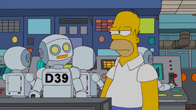 Good News: STAR TREK: THE NEXT GENERATION alum Brent Spiner will very soon be returning to his robotic roots thanks to an upcoming episode of THE SIMPSONS. Bad News: Well, aside for poor Lenny and Carl, who will very soon find themselves with a little too much time to spend at Moe’s Tavern, Mr. Burns’ decision to keep Homer as Springfield Power Plant’s sole human employee amidst a roomful of robots (voiced by Spiner) is most definitely not going to end well. Or at least that was the distinct impression we were left with following a first look at these just obtained photos from the upcoming March 18th episode of THE SIMPSONS appropriately titled “Them, Robot.” See for yourself, after the jump.