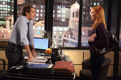 Scott Bakula: In this case it was easy because I’m a fan of the show. My wife and I got hooked from the beginning and have pretty much watched for eight years. I’ve bumped into Marc Cherry periodically over the years and he would say, “We gotta get you on the show,” and I would say, “You’re right!” yet it just never happened. And basically I had written off that it would ever happen so when they called and asked if I wanted to do the last five, it just sounded perfect. Plus, it was working with Marcia, who I had worked with when she was a baby, twenty years ago on QUANTUM LEAP, so it all seemed like it was meant to be.