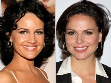 On account of our inexplicable need to point out actors who remind us of, well, other actors comes the latest instalment of our popular ongoing “Separated at Birth” series inspired by USA Network’s POLITICAL ANIMALS. Is it just us… or does ANIMALS’ intrepid reporter Susan Berg played by Carla Gugino look strikingly similar to that of ONCE UPON A TIME’s Evil Queen/Mayor Regina Lana Parrilla? Discuss.