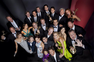 With television talent both in front and behind the camera making a habit of tweeting photos ranging from spoilerific to hilarious, theTVaddict.com thought it might be fun to introduce a new feature to the site that we’ve not-so-cleverly decided to call “Photo of the Day.” Today’s subject, courtesy of MODERN FAMILY co-creator Steve Levitan (@stevenlevitan) comes a behind-the-scenes look at his show’s recent golden moment. Tweeted Levitan, “Backstage at the Emmys!”
