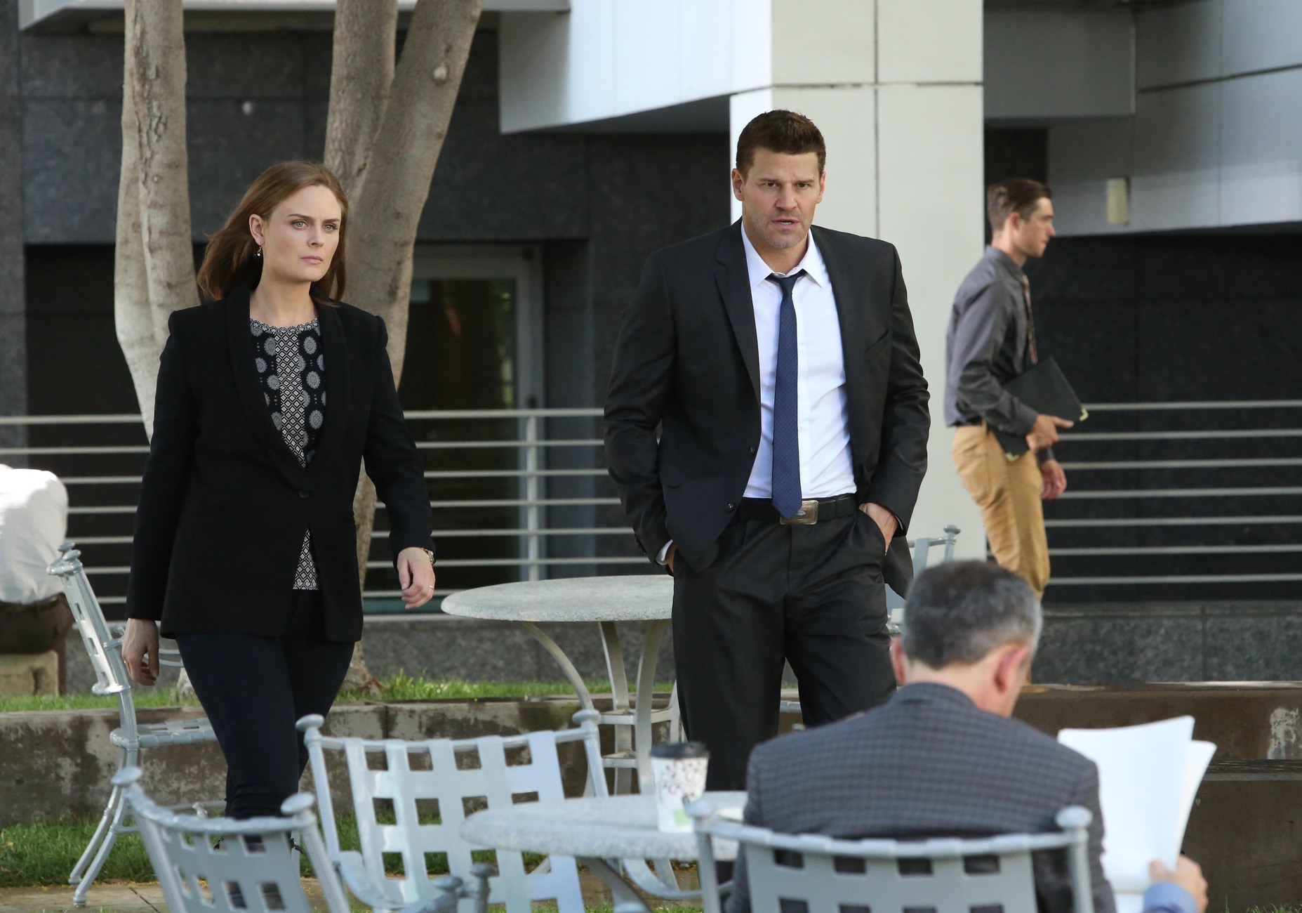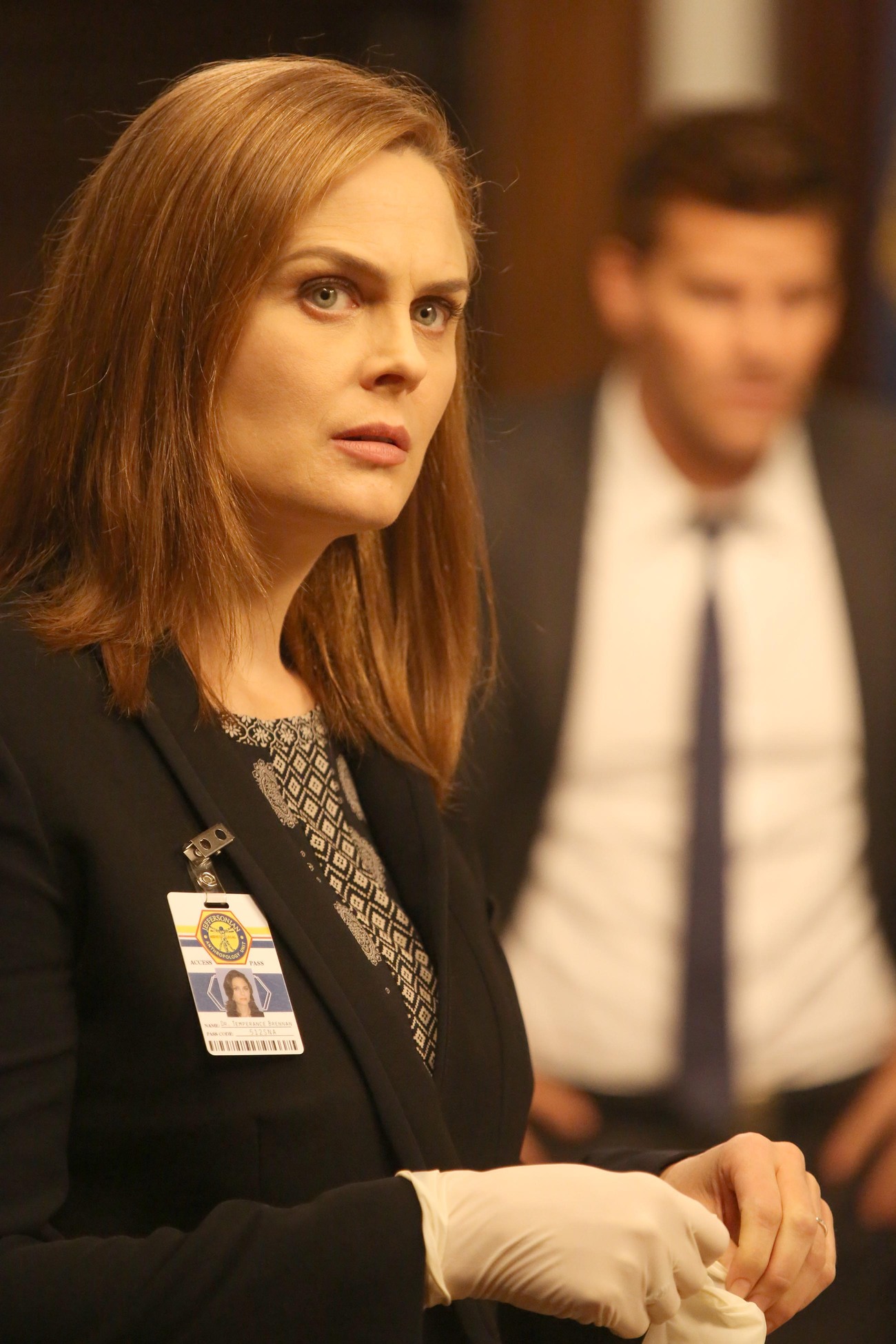 This just in, new episode photos and previews from the Thursday October 2nd episode of BONES. Direct from FOX, “To find out who framed Booth for murder, the Jeffersonian team, with the help Special Agent James Aubrey (guest star John Boyd), continues to investigate who is behind a conspiracy within the Federal Government that dates all the way back to J. Edgar Hoover. Then, when foreign DNA is found in a previous victim linked to the scandal, the team is able to narrow down the number of suspects, leading them closer to cracking the case.”