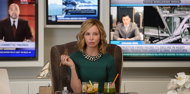 Tonight’s episode may retcon that premise as Livewire is described as a volatile CatCo Media employee, Leslie Willis, (the aforementioned shock-jock) who is transformed into Livewire and targets Cat Grant (Calista Flockhart) and SUPERGIRL (Melissa Benoist).