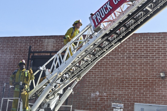 2. The pair gets to climb a hook-and-ladder, work with the LAFD and drive a firetruck.