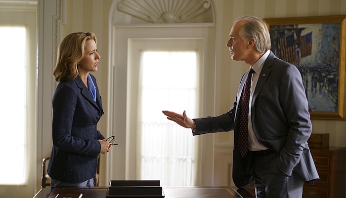 Meanwhile, Elizabeth continues to pursue this situation independently. She reaches out to another asset of hers to find out if Dmitri is actually alive. When Mike B. tells her that the Buckley trade would be viewed as extremely unfavorable for the current administration, Elizabeth tells her staff to come up with comparable inducements to offer the Russians instead. And then Mike B. drops a bombshell: it appears that the President is seeking out candidates to replace Elizabeth as Secretary of State. Naturally, she’s utterly shocked by this news, but she recovers quickly and says she’s not worried. Henry is also shocked by the possibility that Conrad could betray his friend like this. But when Elizabeth finds out more information, she heads to the White House to confront the President.