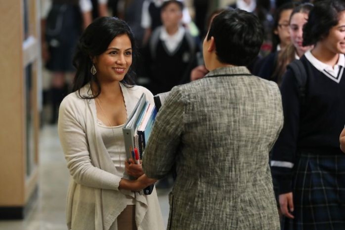 Elsewhere in the episode Snow looks forward to her first day back in the classroom as a teacher. We’re also going to meet Karen David’s new character (see photos below). She’ll be playing Princess Jasmine/Shirin and it seems that in Storybrooke she’ll be working alongside Snow at the school. Meanwhile, Emma looks forward to Hook moving in with her, but Hook finds that he has to protect Belle from Mr. Gold, who has made sure she can’t leave the confines of the Jolly Roger. Will this put a crimp in Hook and Emma’s?