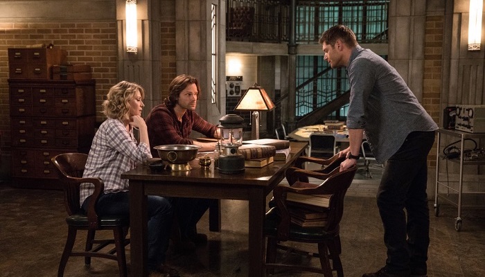 Back at the bunker Mary apologized to Dean for her part in this mess. But Dean explained that everything she did had made them who they are — kickass hunters who save the world. Sam walked in just as Mary said she was worried he could never forgive her, leading to a family hug.