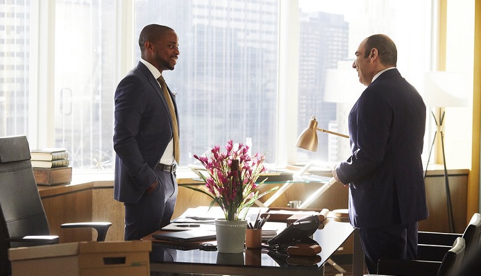 Knowing how sensitive Louis is and how often he’s been bullied, Harvey chose throw feelings that he’d shared in confidence back in his face when the name partners argued in “Mudmare.” What exactly Louis’ insecurities had to do with whether or not to keep Mike Ross’ client, no mature person will ever know. New client versus an actual contractual line about a junior partner’s workload, especially after that junior partner checked for clients ahead of time? Seems pretty clear cut.