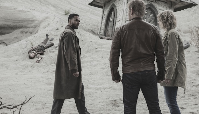 While photos for the season premiere of SUPERNATURAL focused on Sam and Dean’s introduction to Jack, Lucifer’s son, photos for the second episode focus more on Jack’s father, Lucifer. Trapped in the alternate reality (or Earth-2, as we like to call it) with Mary, Lucifer is going to get a bit of a surprise when that reality’s version of his brother, the archangel Michael, comes to pay him a visit. Remember, this is a world where Michael and the angels won the apocalyptic war.