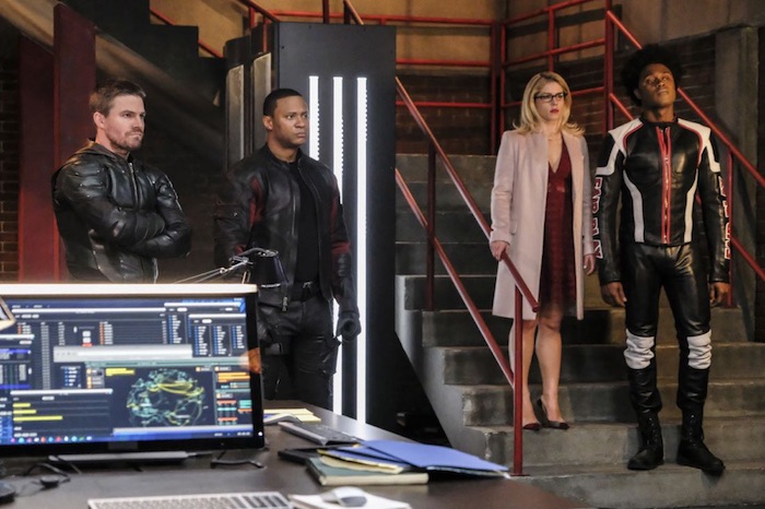 ARROW 6.14 “Collision Course”: Oliver (Stephen Amell), Diggle (David Ramsey) and Felicity (Emily Bett Rickards) disagree with Dinah (Juliana Harkavy), Curtis (Echo Kellum) and Rene (Rick Gonzalez) on how to handle Black Siren (Katie Cassidy). The two teams face off and a fight ensues. Ken Shane directed the episode written by Oscar Balderrama & Rebecca Bellotto