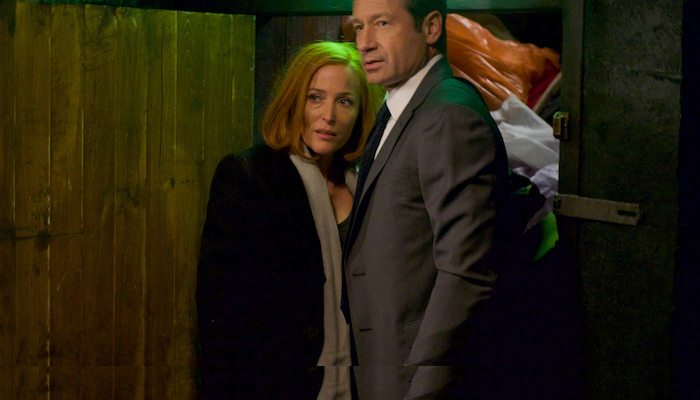 - Actually good parts of the investigation: Mulder rattling off nonsense about “holy properties necessary to defeat evil” while Scully looks at him like, “wow, let’s go sin together.” And how about Fox Mulder, sporting Gillian Anderson’s glasses, while finally noticing Scully’s haircut? And Gillian’s delivery on the “are you kidding me.” Amazing. More of that, less blood smoothies! PLEASE!