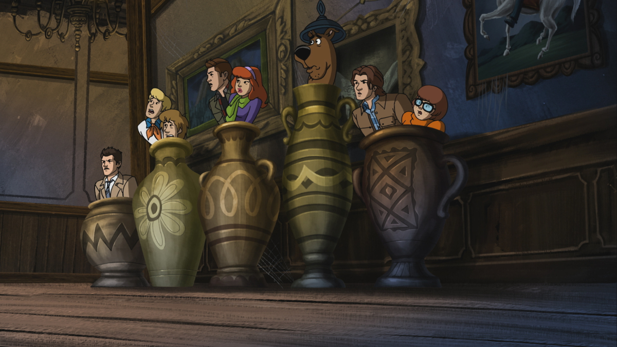The Winchester brothers are getting animated in a late March episode of SUPERNATURAL. This technically isn’t the first time one of the brothers heads into an animated world (that happened in the episode “Hunteri Heroici”) and it’s not the first time they’ve ended up in a television show (that was season 5’s “Changing Channels”). But this will be the first time we see the animated versions of Sam and Dean, who will end up in the world of SCOOBY DOO.
