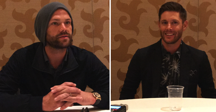 After the SUPERNATURAL panel (which, sadly, did not include another performance by Kansas this year), the cast — Jensen Ackles, Jared Padalecki, Alexander Calvert and Misha Collins — and the executive producers — Bob Singer, Andrew Dabb, Brad Buckner and Eugenie Ross-Lemming — headed to the SUPERNATURAL press room to speak to reporters about what’s in store for season 14 of the show.