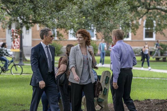 Of all four of those (and many more) reasons, #4 seems to be the most persuasive argument against building a bomb. When NCIS: NEW ORLEANS investigates a deadly car explosion in the French Quarter, it discovers that one of the victims of the bombing was a former member of a student protest organization. When Dwayne (Scott Bakula) confronts a professor and a group of student protesters, the conversation turns from combative to cooperative when the group learns that the former associate perished in the blast.