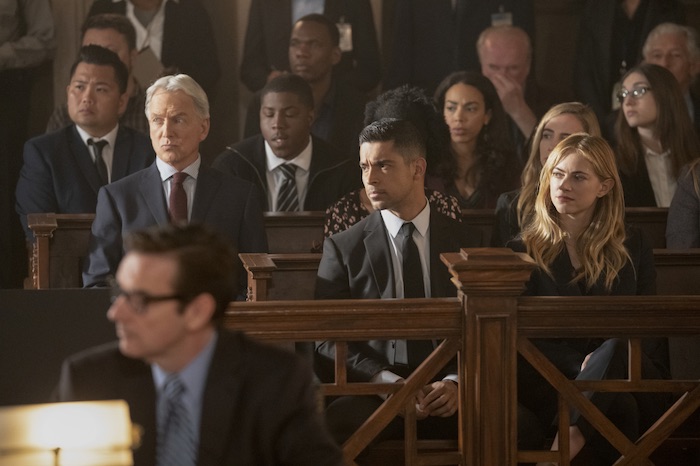 Kasie (Diona Reasonover) has solved a 30-year-old murder case involving ice cream laced with strychnine. Supported in court by Gibbs (Mark Harmon), Bishop (Emily Wickersham), Torres (Wilmer Valderrama) and Jack (Maria Bello), Kasie’s DNA evidence proves who the killer is. Unfortunately, there is a loophole that may prevent the perpetrator from being convicted. The judge on the case, guest star Mike Farrell of M.A.S.H. fame, notes that Gibbs is “very determined.” (A slight understatement…)