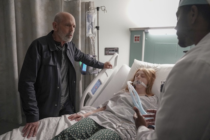 Her daughter with Fornell (recurring guest star, Joe Spano) is hospitalized after someone drugs her at a campus party. When Gibbs and Jack (Maria Bello) arrive at the hospital to help Tobias, the doctor tells them that Emily’s condition is critical. Gibbs sees how Emily’s (Juliette Angelo) brush with death is affecting his buddy, Fornell, and thoughts of his own deceased daughter, Kelly, and first wife, Shannon, have to be weighing heavily on his mind.