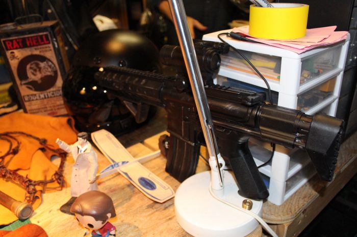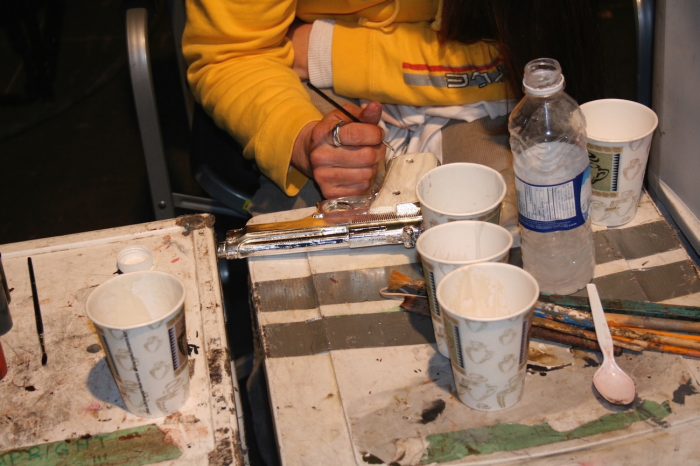 Slide 1 of 732007 (Season 2). A props department’s person is painting Dean’s gun.