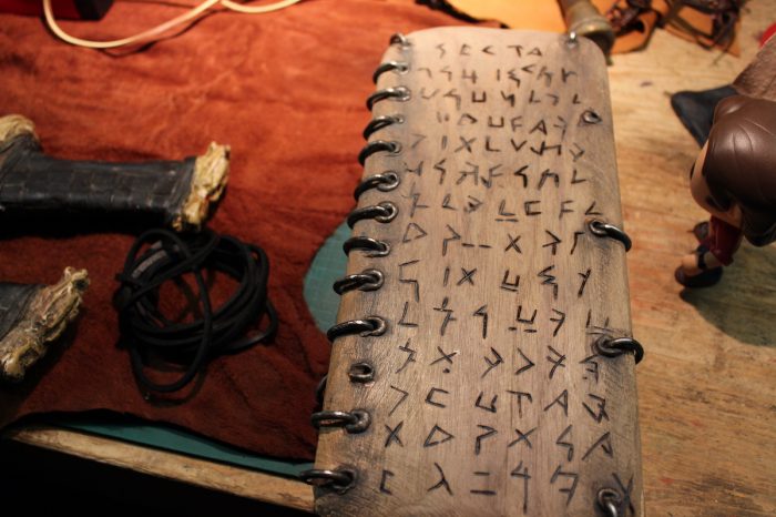 Slide 1 of 732016 (Season 12). The tightest timeline they’ve had for a prop was the angel killing sword in terms of reading the script, coming up with the design and having it built by their sword maker. Prop master Christopher Cooper basically hand created it from scratch.