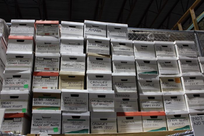 Shows like SUPERNATURAL that have been on for a long time will have a large collection of clothing that it stores, both at the studio and in off-site warehouses. In the warehouse off-site, they store a lot of the uniforms or children’s clothes or the types of clothes they don’t use on a continual basis — like any period costumes.