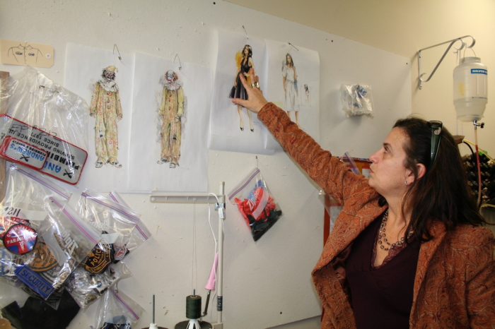 Slide 1 of 732007 (Season 2). Costume sketches in the wardrobe department offices.