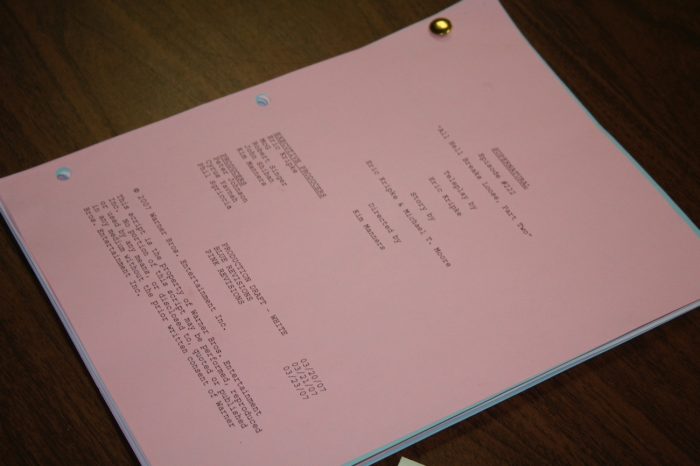 Slide 1 of 732007 (Season 2). The script for the season 2 finale, which was being filmed while TheTVAddict was on set.