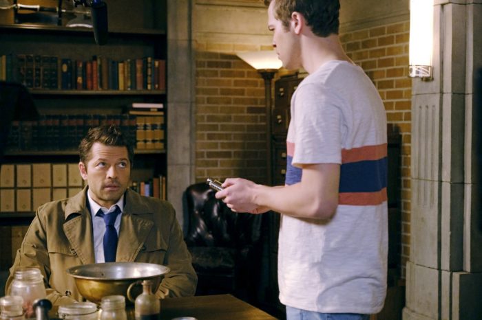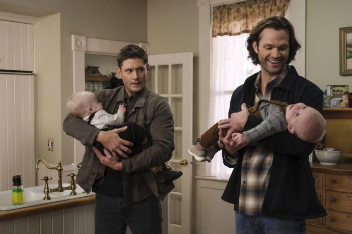 SUPERNATURAL returned from its last hiatus with an episode that wrapped up the “Wayward Sisters” storyline and showed us that Chuck is killing off his various alternate worlds in order to focus on this one. In the next episode, we’ll get a look at another Sam and Dean — a pair of brothers who seem to be very different from the ones we know. They drive a different car (one that our Dean would very much not approve of), while Dean wears preppy jackets and Sam wears man-buns. Needless to say, our Winchesters are a bit flabbergasted.